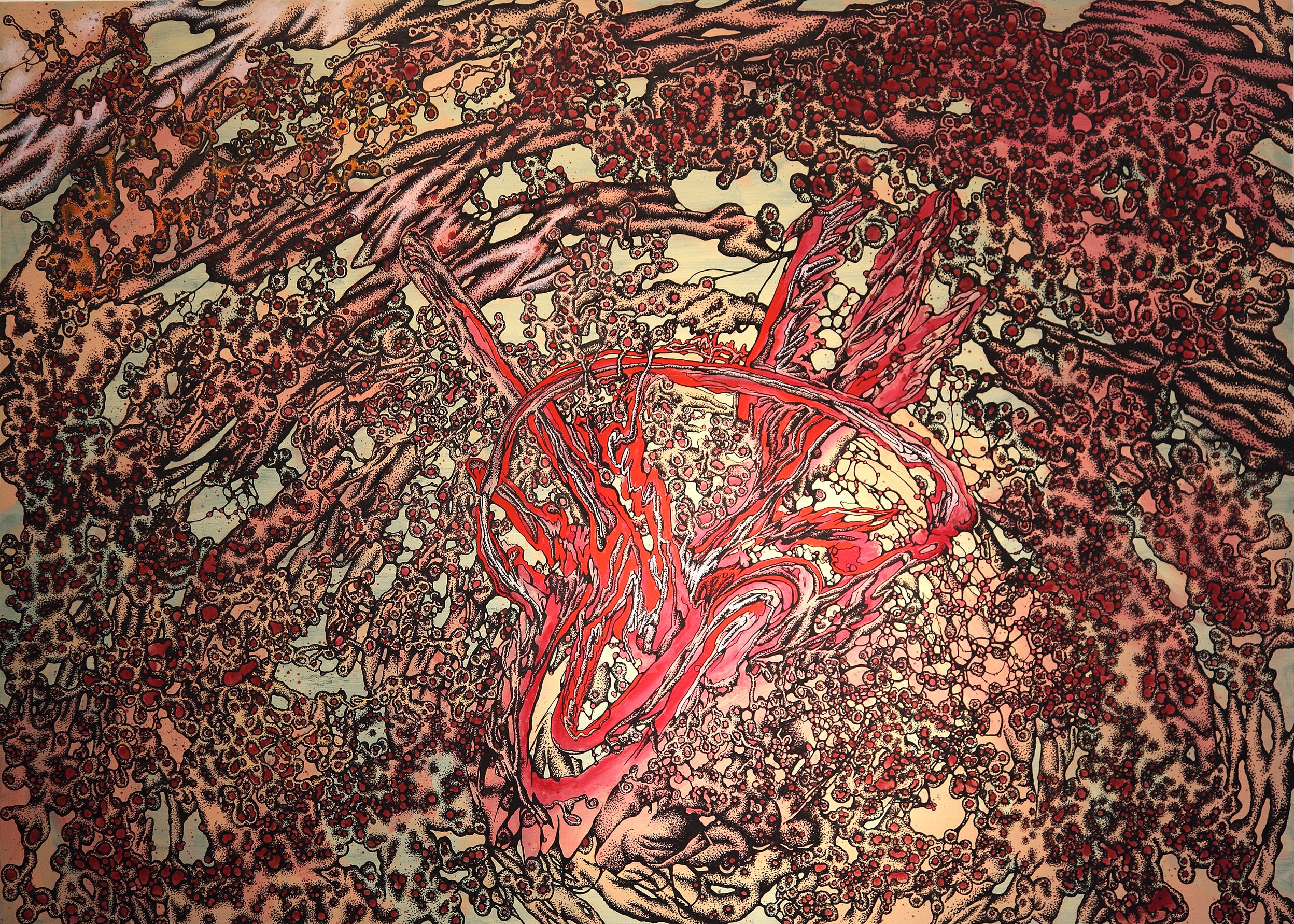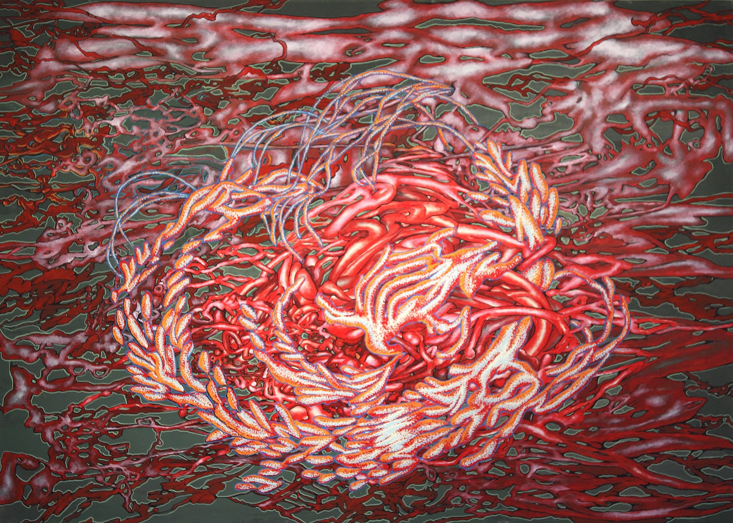 The works entitled Rewinding from 2011 are a combination of diary entries and imaginative assemblages of forms. They are made in the acrylic technique on canvas and paper.